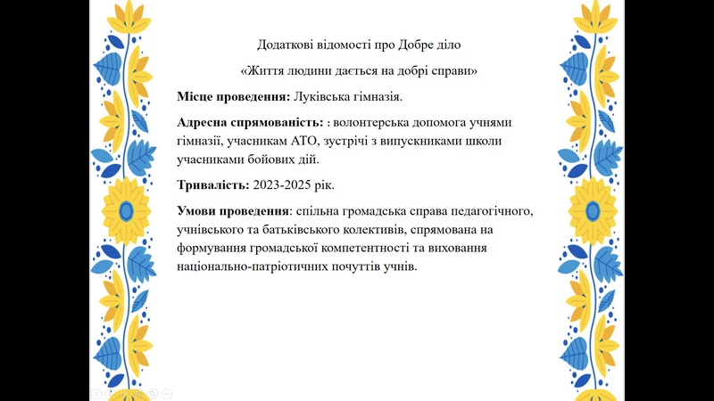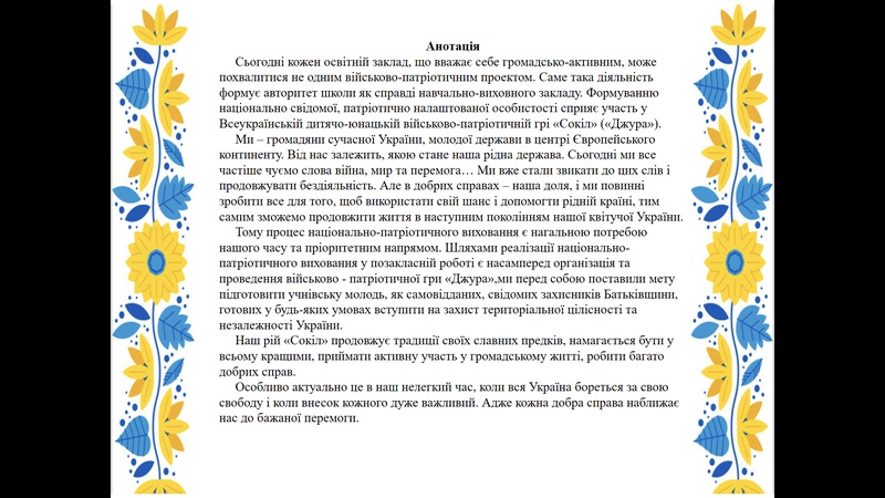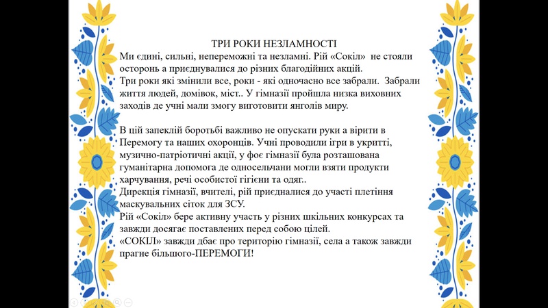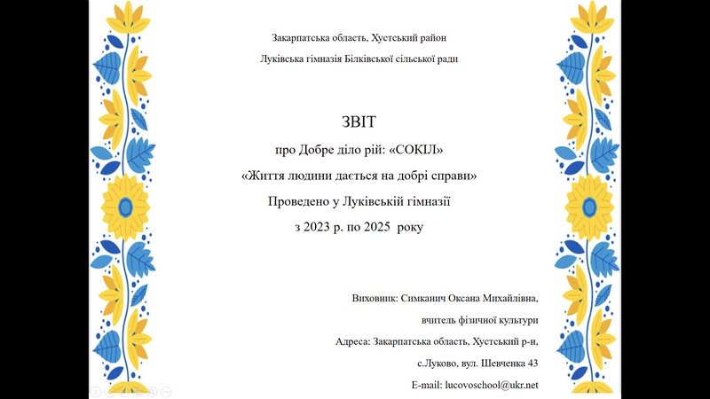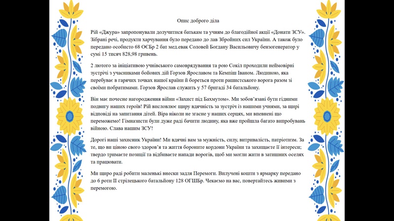 ЗВІТ про Добре діло рій: «СОКІЛ» «Життя людини дається на добрі справи»